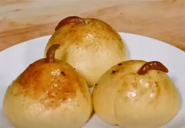 9.最後在蒸好的大白梨上刷少量的甜麵醬,今天這道美食就製作好了,喜歡的朋友不妨在家試試。