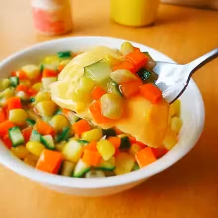 雞蛋2個、玉米適量、黃瓜適量、胡蘿蔔適量、胡椒粉適量、鹽適量。