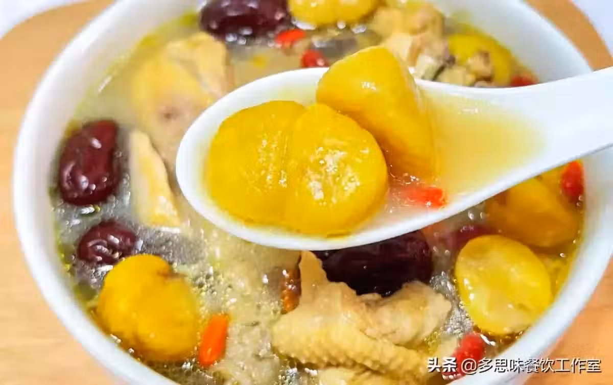 3加入板栗,紅棗,枸杞再燉15分鐘,出鍋前加鹽調味。