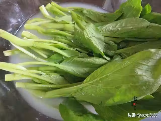 3、菜心放入淘米水中浸泡15分鐘後,再清洗乾淨。淘米水有殺菌消毒的作用,有助於洗去菜心殘留的農藥或菜蟲。