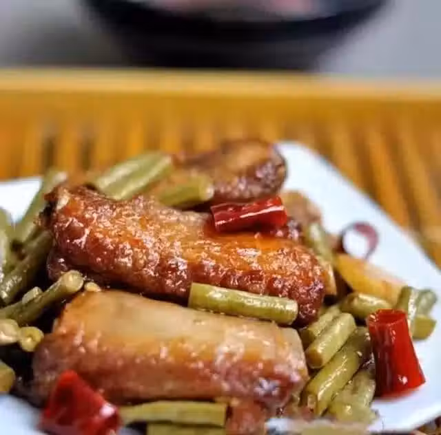 1、酸豆角切小段,排骨洗凈晾乾水分,加入腌料拌勻腌制1小時。