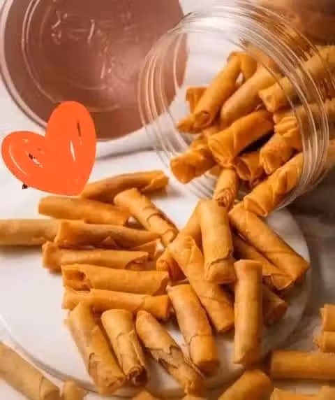 3、然後開始包春卷,現將旁邊的麵皮往內卷,接著將靠近自己的麵皮往內卷,卷好後用蛋液粘好。