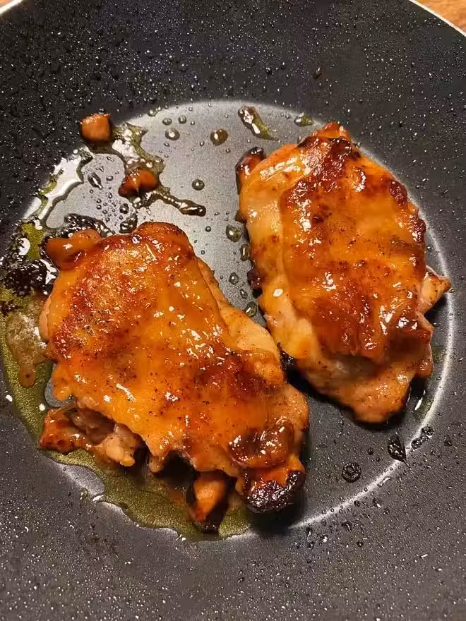 用料 雞腿 2隻 李錦記叉燒醬 2勺 生抽 1勺 現磨黑胡椒 適量 油 1勺