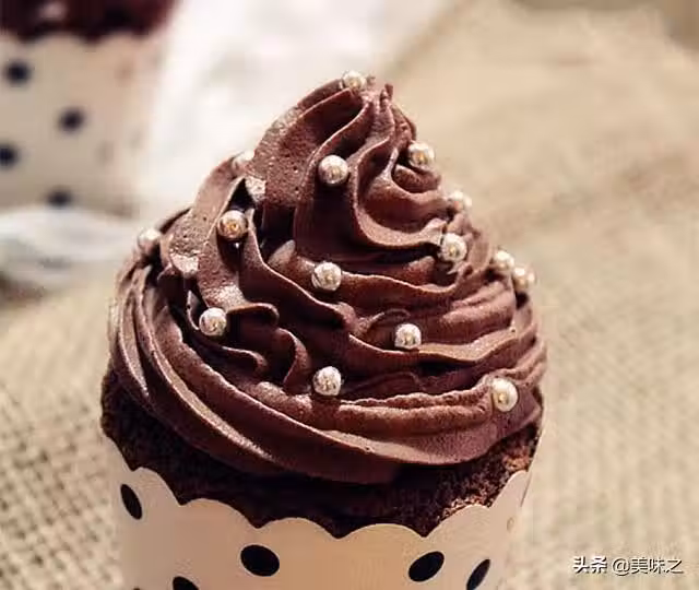 11、將奶油裝入裱花袋中,用星形裱花嘴把奶油擠到紙杯蛋糕上,點上少許裝飾糖即可。