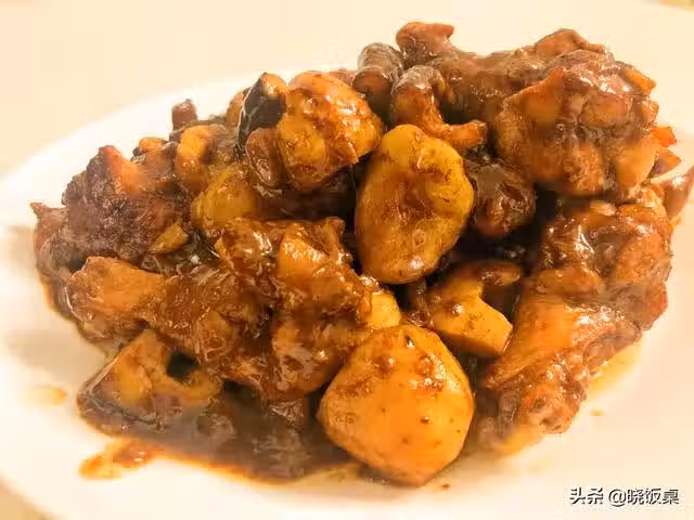 在家自製醬香味濃的栗子雞,雞肉嫩滑,栗子軟糯,拌飯能吃兩碗