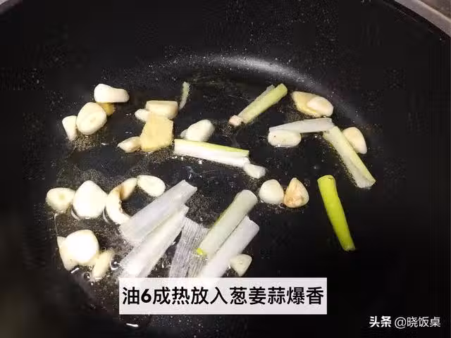 6、起鍋燒油,等油溫6成熱時下入剩餘的蔥姜蒜爆香。