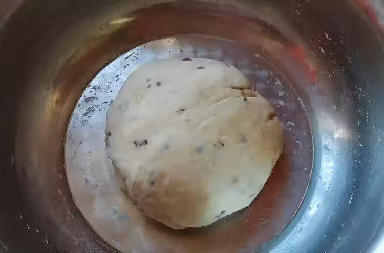 4.在面盆上覆蓋一層塑料薄膜,將麵糰發酵至原來的兩倍大小。