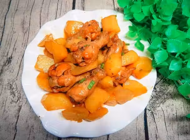 1、土豆去皮切塊,雞腿洗乾淨,對半切一刀。
