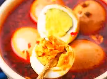 雞蛋5枚、八角2個、花椒10顆、桂皮1塊、辣椒醬1勺、麻椒10克、茴香籽1茶匙、香葉1片。