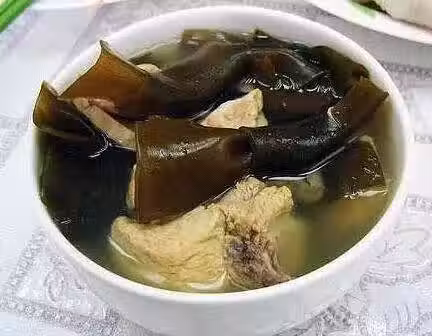 食材:豬排骨400克,海帶150克,蔥段、薑片、精鹽、黃酒、香油各適量。