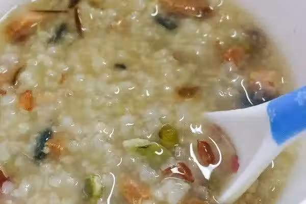 2. 然後把香菇剁碎,皮蛋剁碎,放電飯鍋里煮5分鐘,放少許食鹽提味即可!