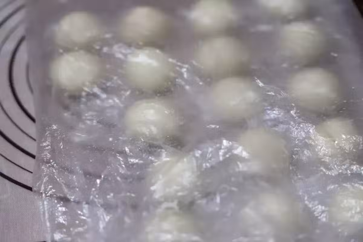 4、再把每個小劑子擀薄一些,跟餃子皮大小差不多就可以,然後把每個皮刷一層油,再重複蓋一層,一次大概5-6張就可以;