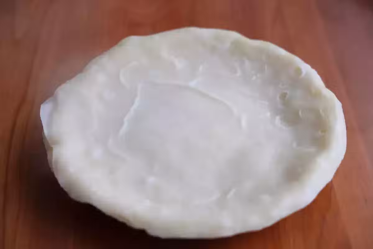 7、用盤子把周圍不規則的邊緣去掉,然後一張張撕開,我們的春餅皮就做好了。