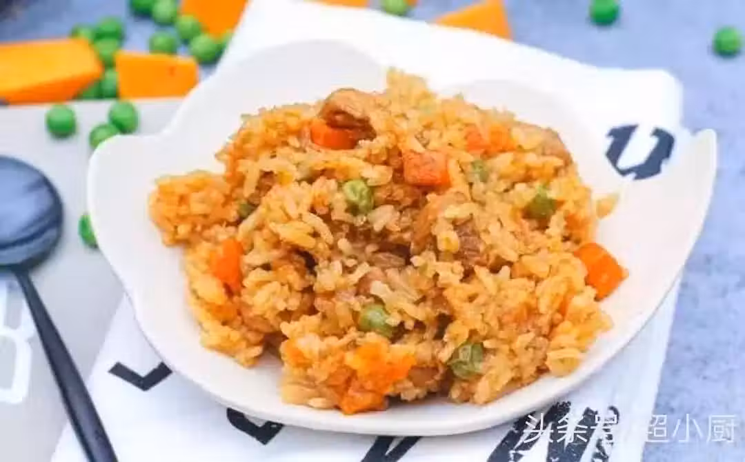 倒入洗好的生大米,和食材翻炒混合均勻後倒入電飯煲,加水沒過食材,按煮飯鍵,煮好後燜十分鐘後就可以吃啦,超級快手的哦!