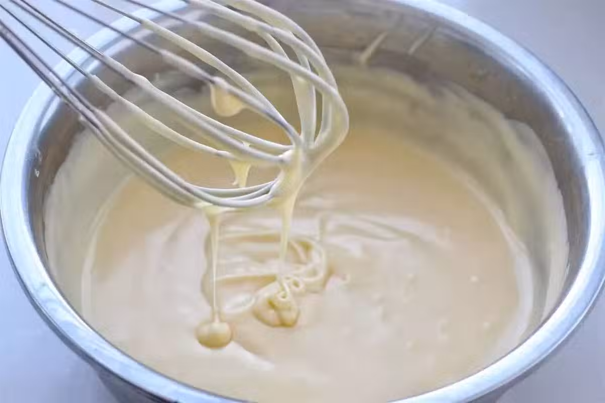 6.篩入低筋麵粉拌勻,再過一遍篩使麵糊更加細膩。