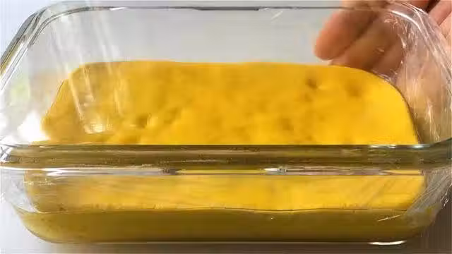 7.蓋上一張耐高溫的保鮮膜,上鍋蒸熟。時間根據個人容器的厚度來定。