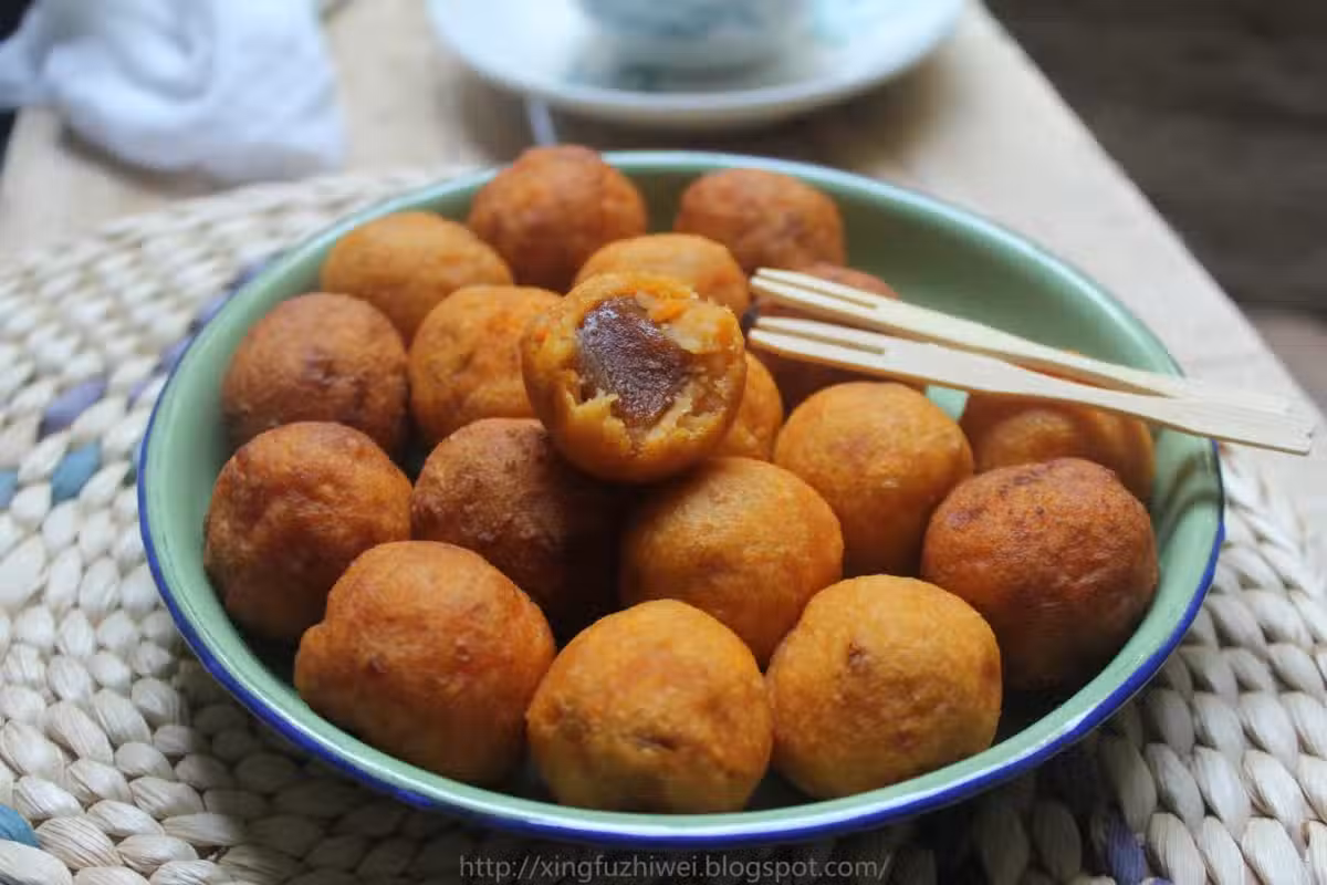 材料:地瓜 (番薯)、麵粉、年糕、細糖、粘米粉、鹽