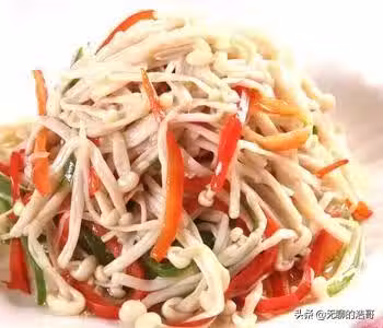 原料:豬肉250克,金針菇600克,雞蛋2個,青椒1個,胡蘿蔔1根,蔥薑絲、精鹽、白糖、料酒、水澱粉、植物油、香油各適量。