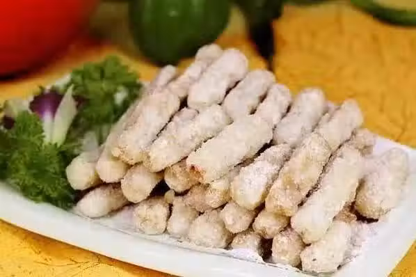1、將芋頭去皮,切成比小指略細的條狀;