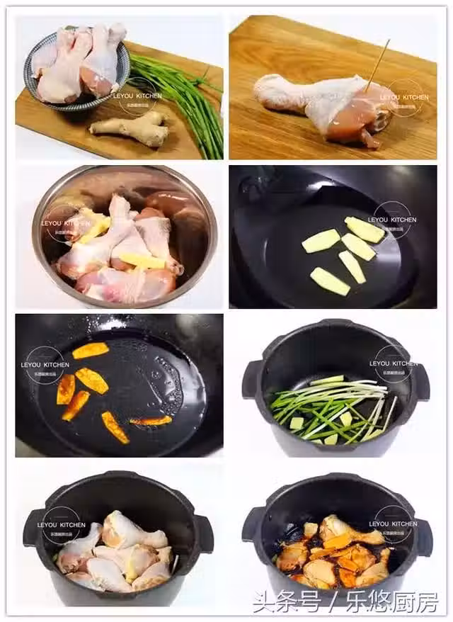 第七步:把雞腿放入蔥姜上面,如圖。
