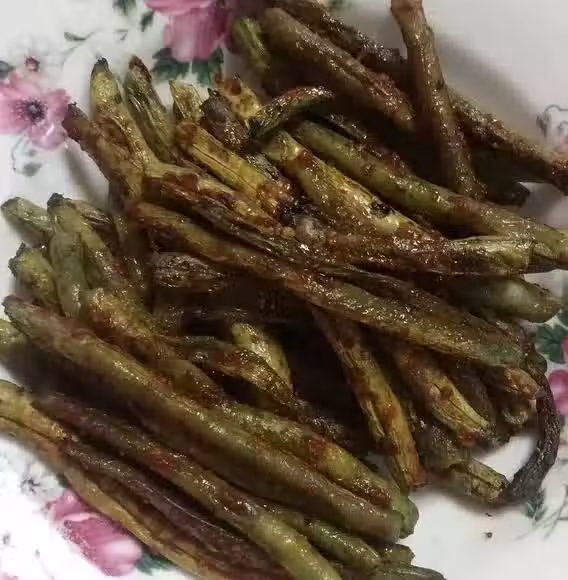 用料:四季豆一斤、蒜蓉辣醬適量、燒烤調料適量、橄欖油適量