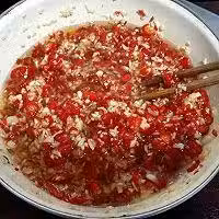 4. 加入調和油,少許芝麻油,拌勻。油要沒過辣椒和大蒜。