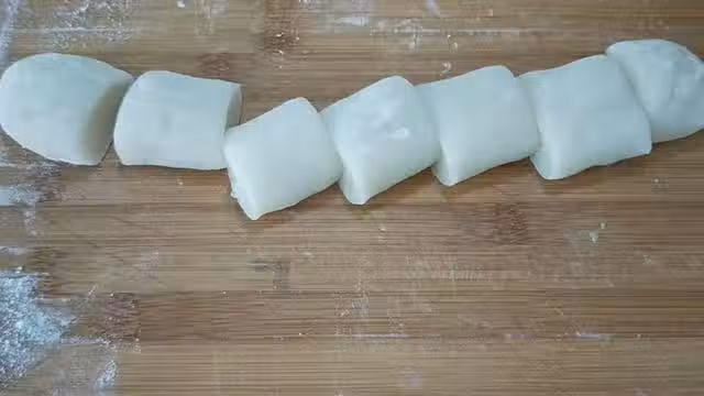 21、取一個小劑子,先用手按扁按薄,再放上花生餡料