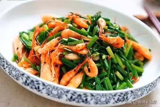 食材:小河蝦200克、韭菜300克、辣椒3個、生薑絲少許、鹽1小勺、雞精1小勺、生抽1小勺