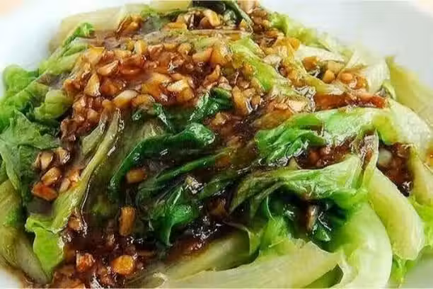 食材:生菜1個、食用油1小勺、蚝油1湯匙、蒜1瓣、干辣椒1個、白細糖1茶匙、雞精1/4茶匙。