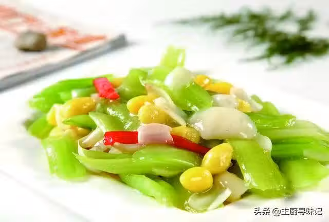 西芹200克,百合50克,白果150克,胡蘿蔔100克,鹽3克,糖5克,雞精2克,油15克,澱粉5克。