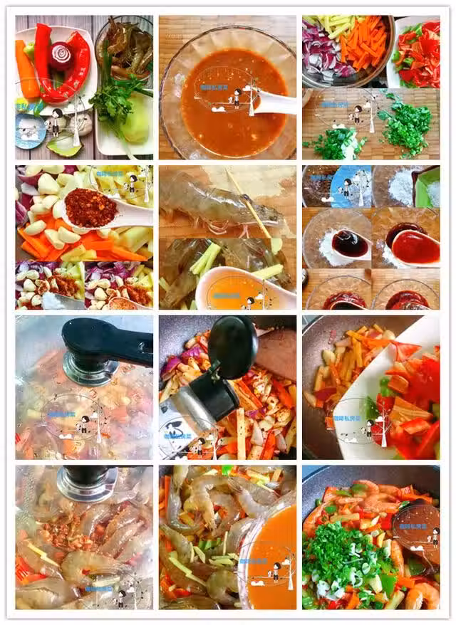 清除蝦胃/全程小火燜製作,不加水/醬料多,不用再加鹽/青紅辣椒晚入鍋,入早會爛掉,只剩下皮了。