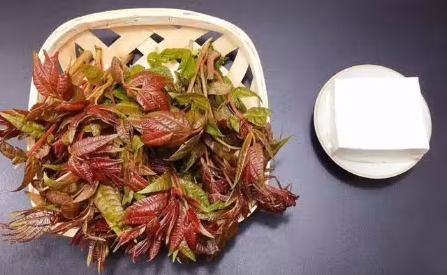 1、 用水將香椿清洗乾淨,將老的部分切掉;