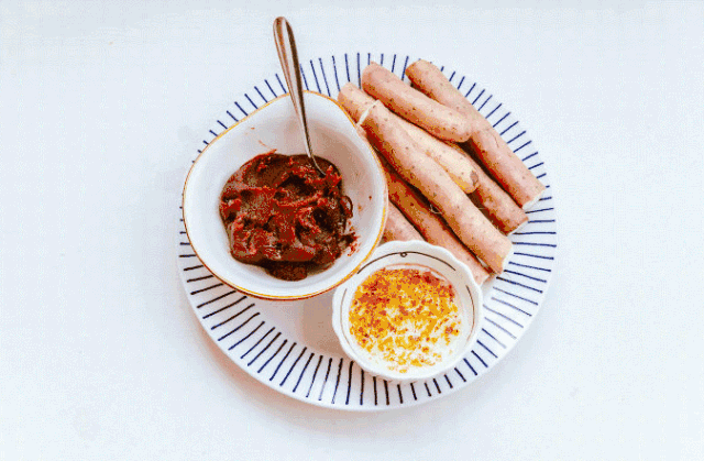 1、將山藥去皮後切段,蒸至熟透軟爛