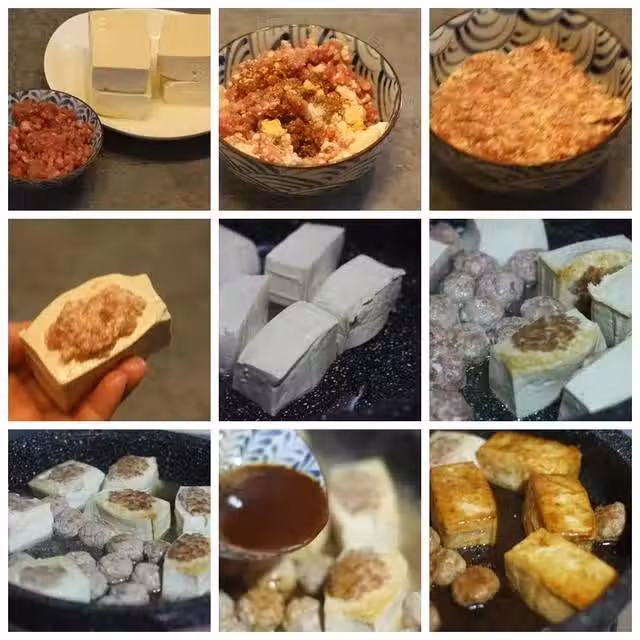 7、把釀豆腐和豆腐丸子都煎得金黃金黃。