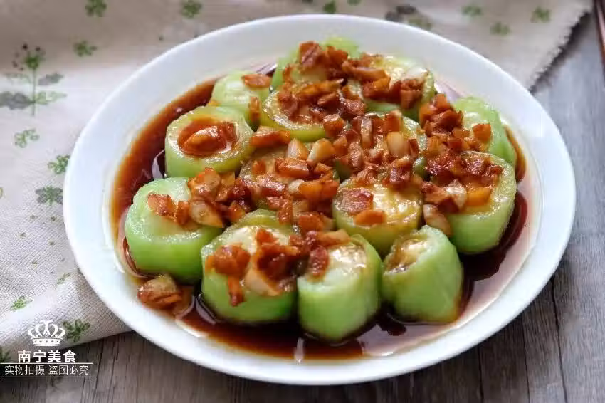 4、把燒好的醬汁均勻的淋在絲瓜上面,這道菜就做好啦