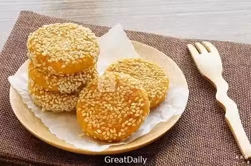 南瓜(去皮後)150g、細砂糖10g、糯米粉100g、豆沙適量、熟白芝麻適量、油適量