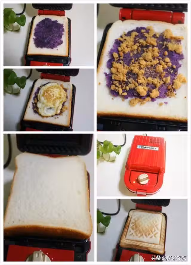 【食材】麵包片、紫薯、肉鬆、雞蛋。