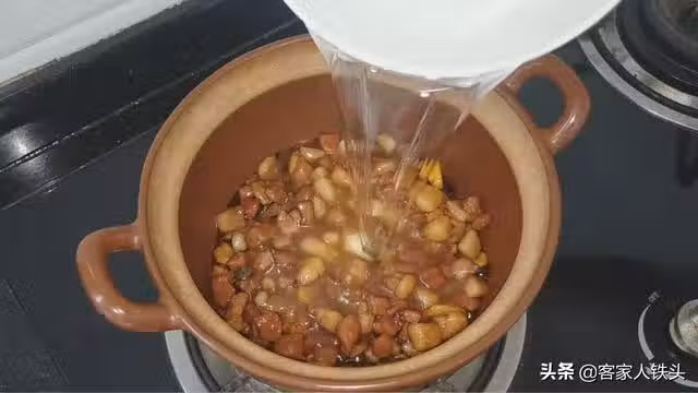 第三步:豬肉煲好了,可以嘗一嘗,煲軟爛了就可以了,汁不要收得太干,最後調大火,淋入半碗濃一點的水澱粉,把它攪拌一下,水澱粉我是用兩勺粉小半碗水調的,稍微濃一點沒關係。