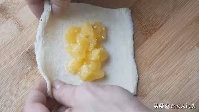 第七步:準備一個烤盤,鋪上一層錫紙,再刷上一層食用油,然後把做好的菠蘿派放上去,烤箱提前預熱10分鐘,把裝好的菠蘿派放進去,調上下火180度烤20分鐘。