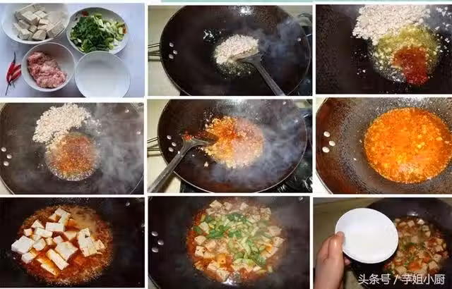 3.麻婆豆腐,要用生粉水勾芡,使湯汁呈濃稠狀,麻辣味更濃。