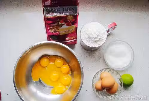 1 、食材稱好備用,盆中打入8個蛋黃。