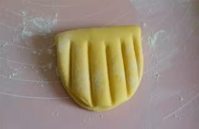 8、用手把兩個角捏住粘起來;看看像不像小貝殼了?