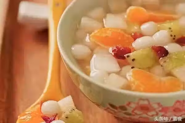 材料:糯米小圓子、 梨 、冰糖桔、 獼猴桃、 冰糖 、枸杞