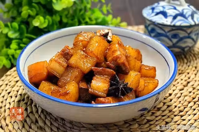 這道蘿蔔燒肉,五花肉酥爛、蘿蔔鮮美、色澤誘人、葷素搭配、咸香下飯。