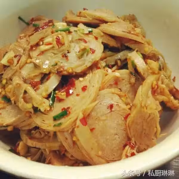1.素雞洗凈瀝水,切薄片。蔥切蔥花,小米椒切小段。