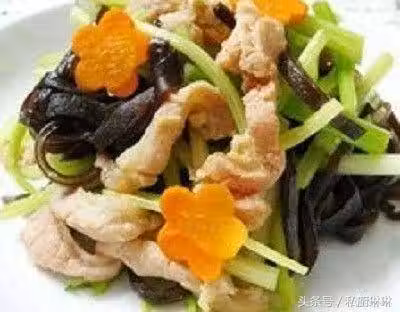 原料:芹菜、肉筋、木耳、油、醬油、糖、姜、酒