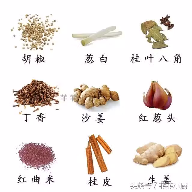 八角1個、丁香5顆、肉桂小手指節般大小、香葉2片記得撕碎、花椒20顆、蚝油2茶匙、胡椒10顆搗碎、紅蔥頭1整個、陳皮3克、沙姜5片。