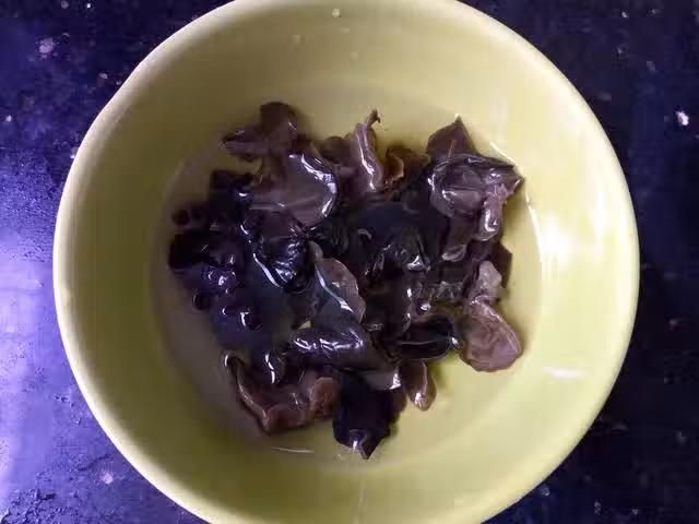 材料:黑木耳,龍口粉絲,油豆腐3個,蘑菇3個,西蘭花,秀珍菇,白玉菇,胡蘿蔔,鹽,料酒 做法:1.黑木耳提前泡發,洗凈。