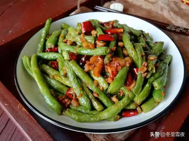所需材料:四季豆500克、五花肉150克、油鹽適量、姜1片、大蒜2瓣、花椒1/3湯匙、干辣椒5個、生抽1湯匙、料酒1湯匙