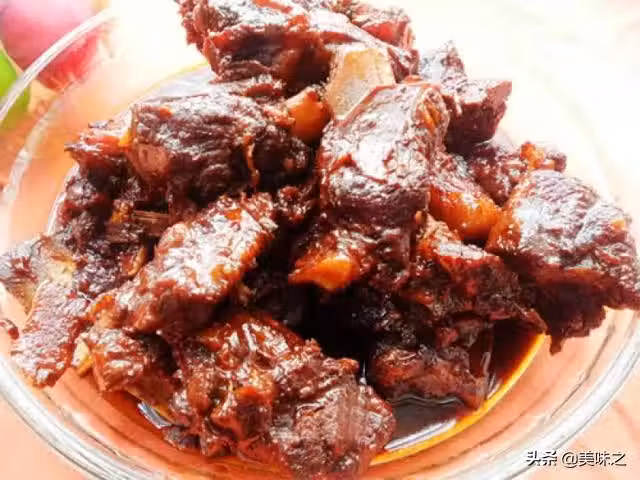 3、放焯好的排骨上色。